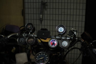 前回のブログでセンサー類取付完了まで書いた。今回はメータの取付。左から油圧計、電圧計、油温計、空燃比計 少し取 … Continue reading ショベルヘッドFLHに空燃比計と油圧計と油温計取付完了