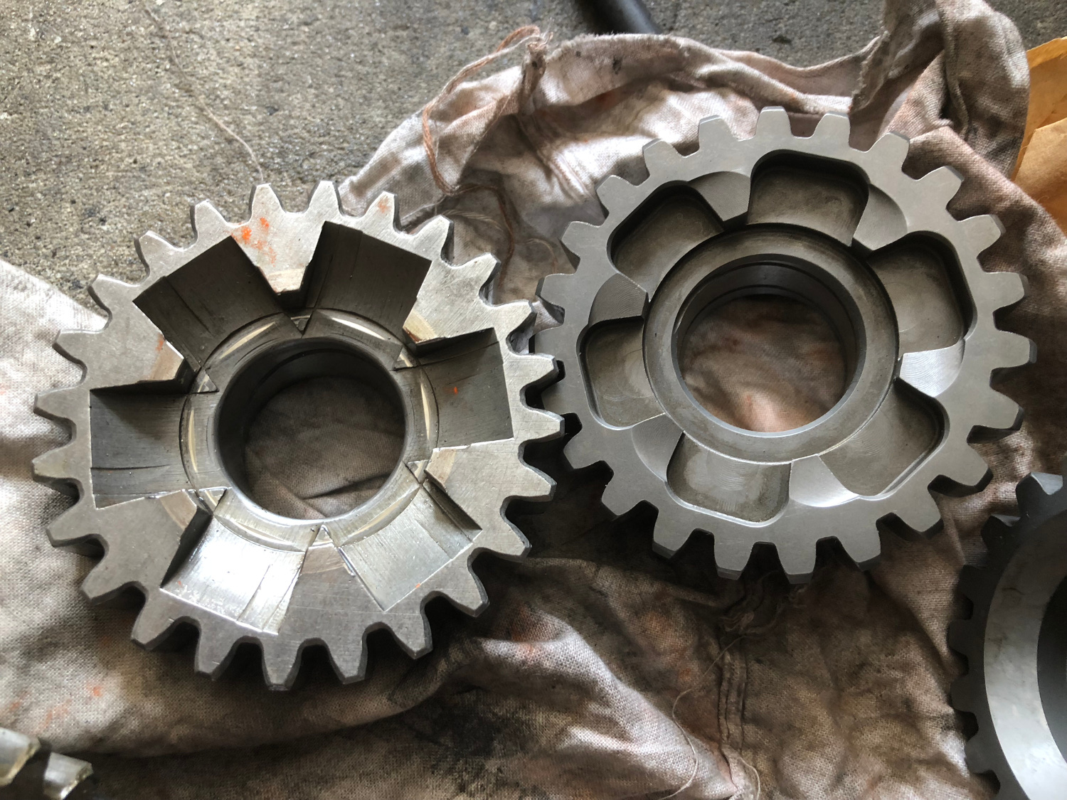 純正3rdギアとアンドリュース3rdギアの比較 工程と使用している加工機が全く違うのがわかる。アンドリュースは縦型MCにエンドミル加工かな?純正はサイドカッターみたいなので削っている。アンドリュースのほうが手間がかかりそう