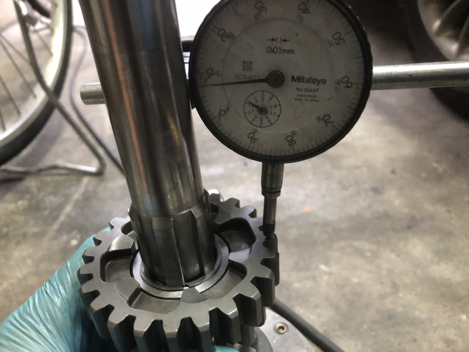 サイドプレイを測定 0.3mmくらいなので規定内だけど0.1mmくらいに調整するためシムを交換する