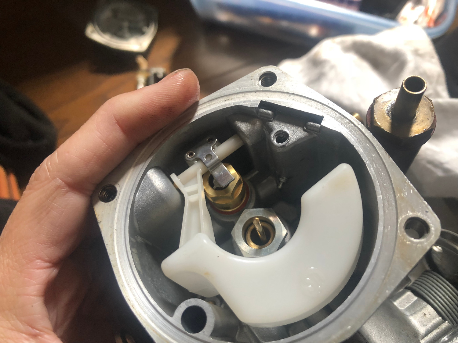 フロートを取ってみる。どうやらジェットらしいものはこの筒なんだろう。部品図はネットで入手出来たので照らし合わせてみる
