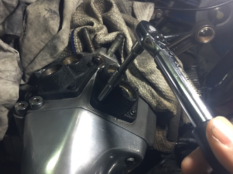ギアケースにタペットローラーを落とさないように注意してタペットブロックを取り付ける。トルクレンチで締め付け。ガスケットは今回JAMESのメタルにラバーコートしてあるやつを使った。