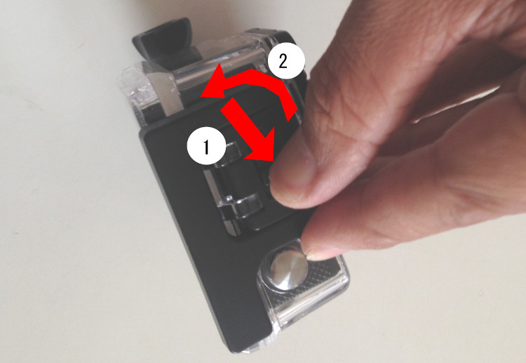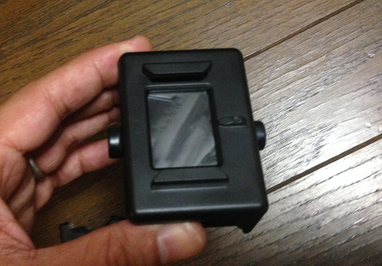 早速本体を取り出してカバーを外した。防水カバー1のポッチをスライドさせて2方向に持ち上げたらロックが外れるようになっている。最初手前のレバーを動かしていたけど動かなくて困ったw