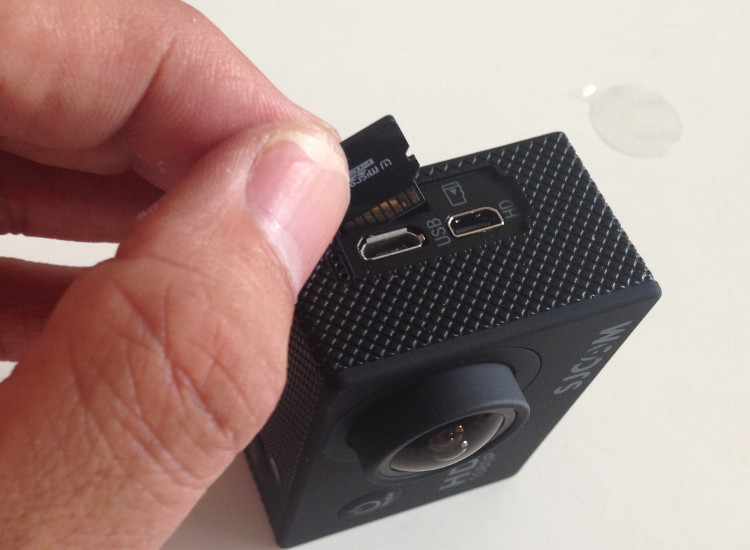 向きを間違えないよう注意してmicroSDカードをSJ4000に挿入。